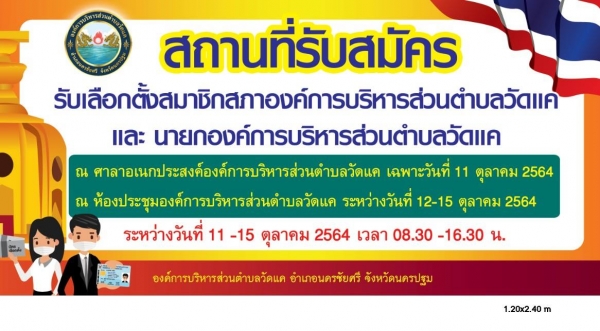 สถานที่รับสมัคร รับเลือกตั้งสมาชิกสภาองค์การบริหารส่วนตำบลวัดแค และนายกองค์การบริหารส่วนตำบลวัดแค