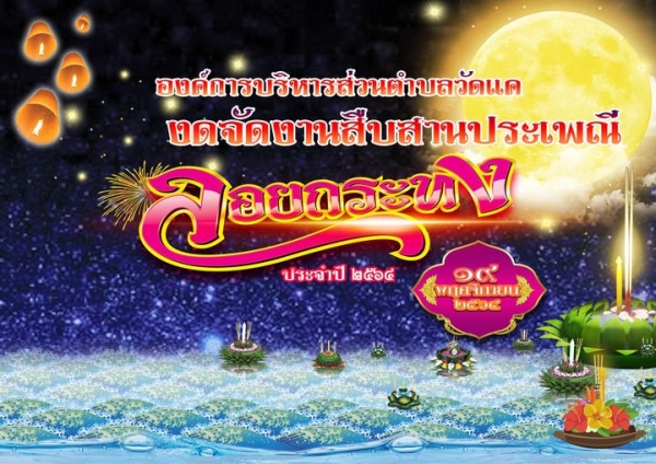 ประกาศองค์การบริหารส่วนตำบลวัดแค งดจัดงาน สืบสานประเพณี ลอยกระทง ประจำปี 2564