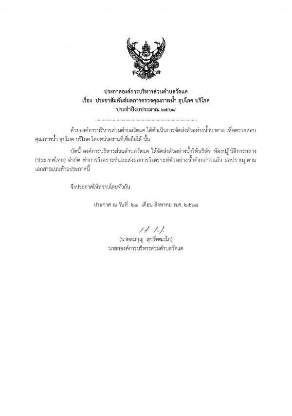 ประกาศประชาสัมพันธ์ผลการตรวจคุณภาพน้ำ อุปโภค บริโภค 2568.docx.pdf